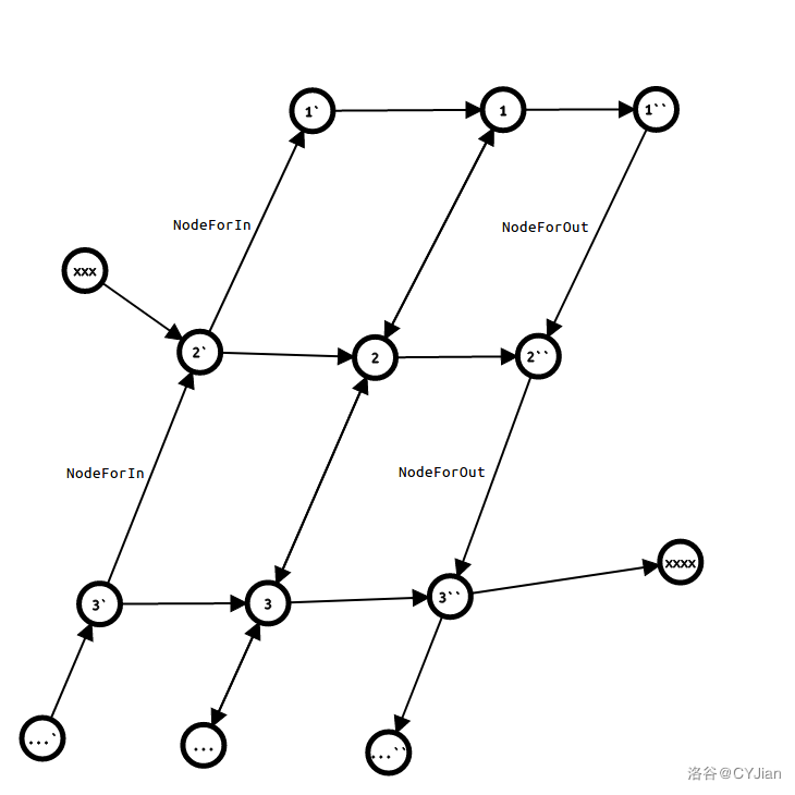 画成一张图大概就长这样了:(1-2-3的一条链,左边是连进来的,右边是连出去的)
