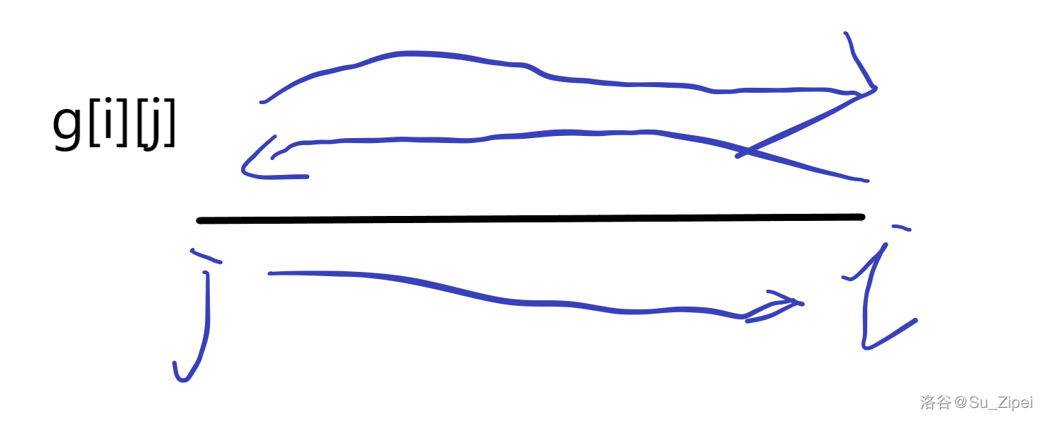 优化其实也挺简单的,主要有一点很恶心,下边再说。(从这里开始默认在的前边,请勿被上图迷惑)我们发现多出来的时间主要是用在了计算略过村庄再回来的死亡人数的计算,所以我们可以先考虑预处理出从到再从到然后又回到i这一过程中最少的死亡数,于是定义含义为上述的来辅助我们的。我还是补一张图吧……把我自己绕懵了
