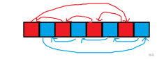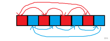 可以发现,当初始点是红点时,蓝色的块永远跳不到,否则红色的块永远跳不到。