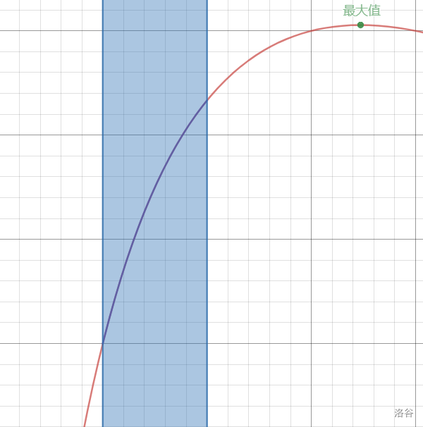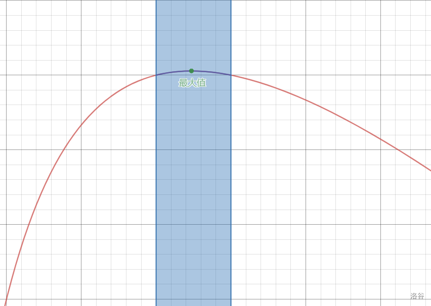 虽然不会对钩函数,但经过适量分析,也可以发现第二部分的函数先递增,后递减,是一个单峰函数。
