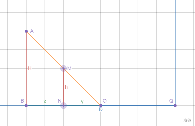 $y_=D-x+H-\dfrac{D(H-h)}{x}(\dfrac{H-h}{H}\le x\le D)$