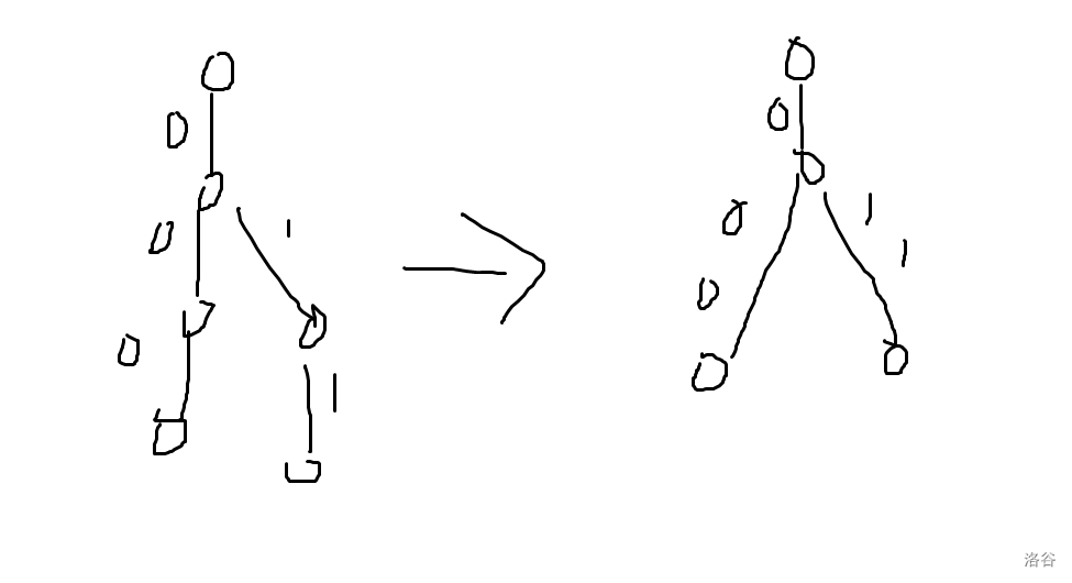 实现起来,大概就是和普通 01trie 一样地从根节点向下匹配,然后假如遇到失配,就分裂当前节点。