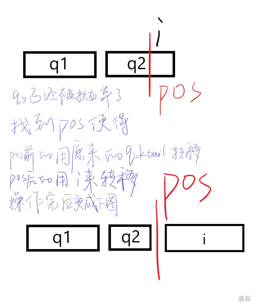 转移到 时,弹出队头直到 ,此时队头是 的最优决策,直接转移。