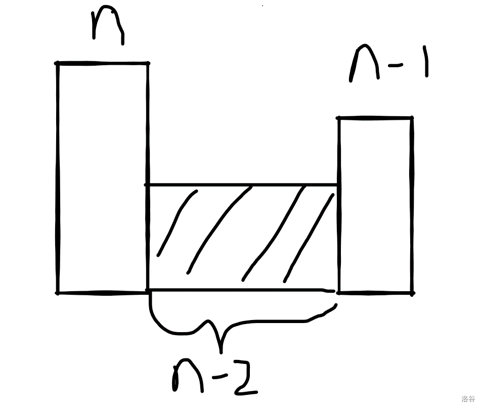 这样所有储水的柱子全在 号和 号柱子之间了。移除一个柱子的那么储水就会减少 这样多。那么我们只要将标号有小到大枚举,这样就保证了不重不漏。而无解的情况就只有