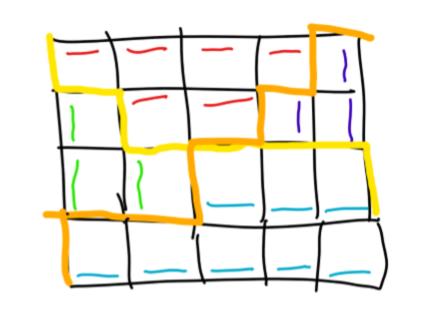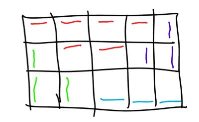 接下来注意到 很大,因此要一列一列来考虑。我们首先将可以走的点划分成一些矩形,然后考虑使用生成函数。