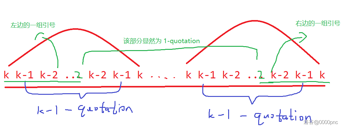然后这里有个关键观察:对于 ,一个 n-quotation 序列(即由若干个 n-quotation 拼接而成的序列)一定是一个完整的 n-quotation。
