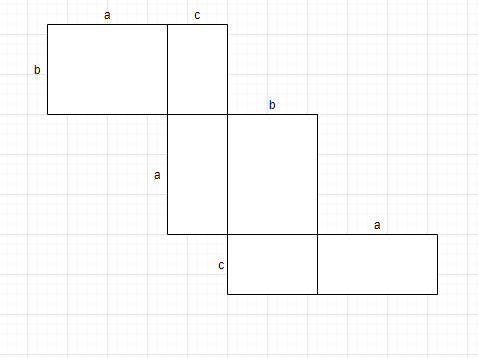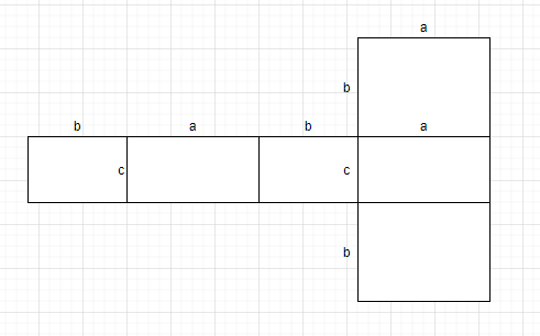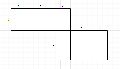 以上呢,就是总结出的三种长方体的展开图,我们也可以通过交换 的值来放置,同样可以将纸张旋转(即交换 的值)。那么我们只需要将 存入一个数组,用系统函数帮我们进行全排列,就可以得出正确的答案了。