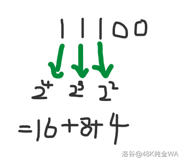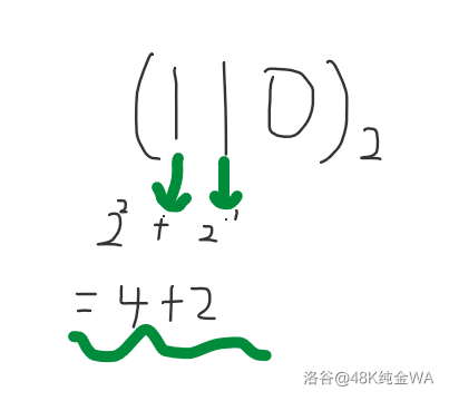 把 转换为进制,每取到一位""就变成十进制,再从大到小输出即为 优秀的拆分。