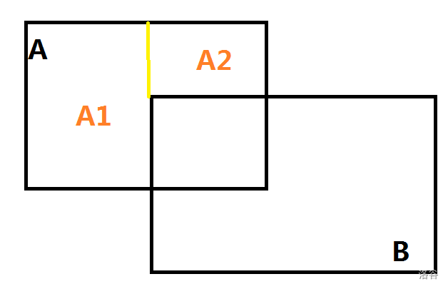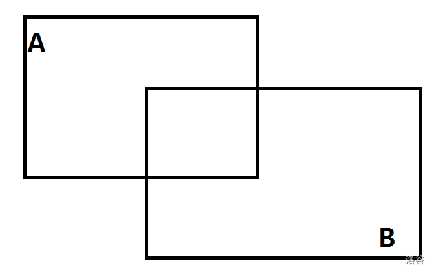 假设这里有一个矩形 A 和一个矩形 B,它们是相交的(不相交的情况直接忽略)