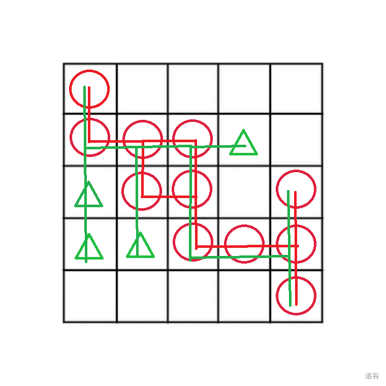 覆盖过的脚印可能为任意一只动物,求动物最少数量时应将覆盖过的脚印当做此动物的。即加入此动物脚印所在连通块。(如下图,红色为最后一只,红线为其轨迹,则绿色可能经过所有红点)