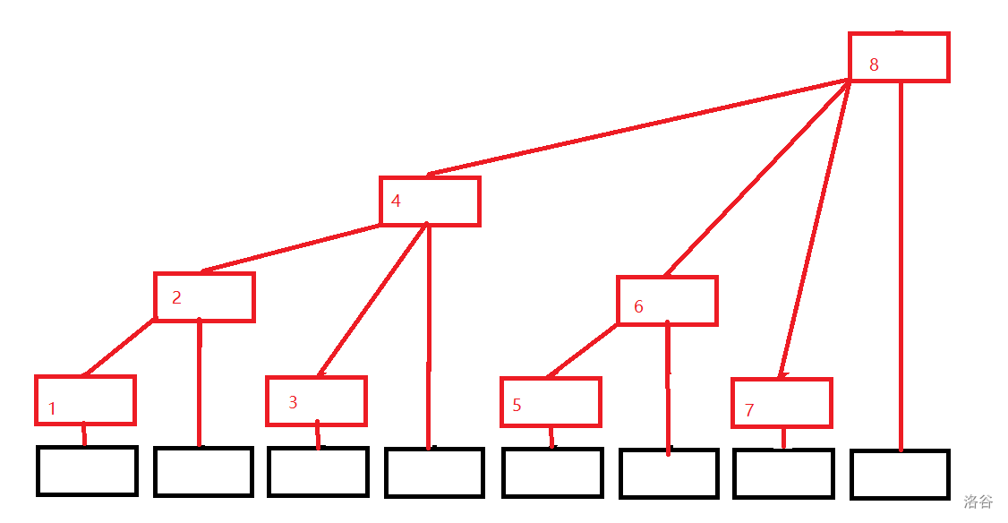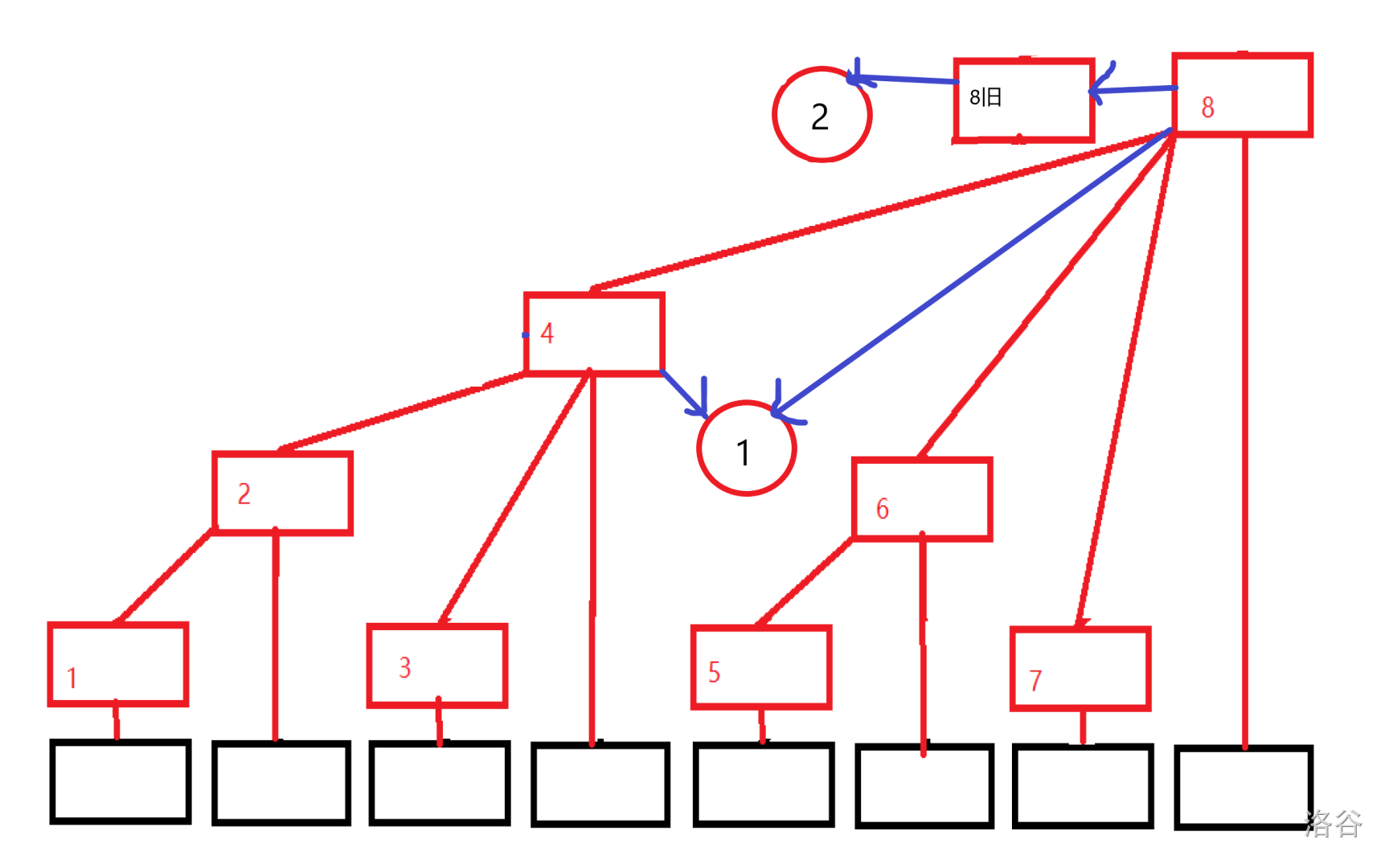 通过当前树状数组节点指向上一个的旧节点,我们可以通过这样得到以前的信息,从而优化建图。我们进行连边时,每次连向当前的树状数组节点就可以得到相应的边。