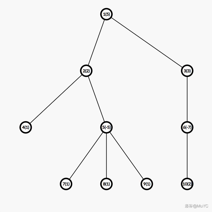 那么有 $f_u = \displaystyle \sum_{v \ is \ u's \ son} f_v [f_v \ge 0]$。