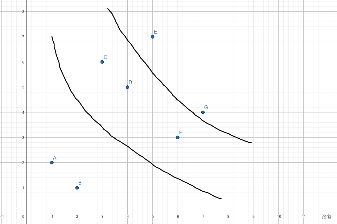 我们发现,一个上升子序列反应到图上是由 , 均递增的点组成的,且任意组 递增, 递减的点一定不是上升子序列。
