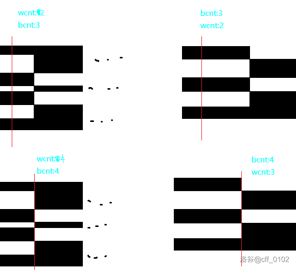 如果这题只考虑左边缘的话也不可能评黑了。接下来考虑右边缘。先随便画几种情况看看。