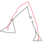 这种情况可以在 的非公共端点沿 方向的第一个点(也就是红色路径与 的交里面最靠近公共点的点)处统计:(将统计的点记为 )