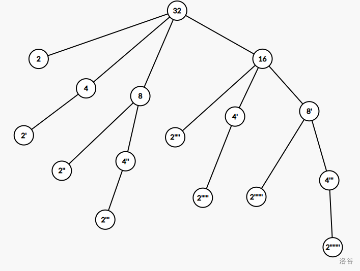 对 分解质因数后直接暴力搜索,记录 到 中每个数在树中出现了几次,直接输出即可。